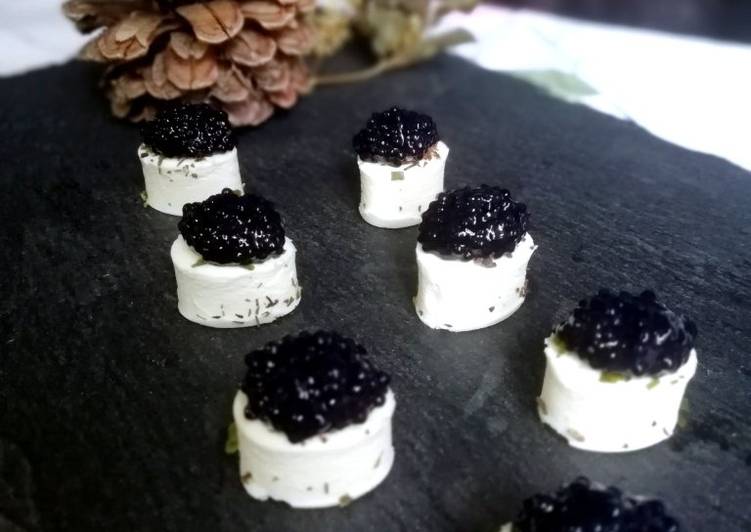 - Prendre une petite cuillère (idéalement une cuillère bébé ou une pour verrine) et déposer sur les Apérivrais un peu d'œuf de lump..